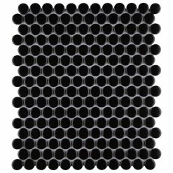 Outlet β€οΈ Merola Tile Metro Penny Matte Satin Black 9.75″ X 11.5″ Porcelain Mosaic Tile π